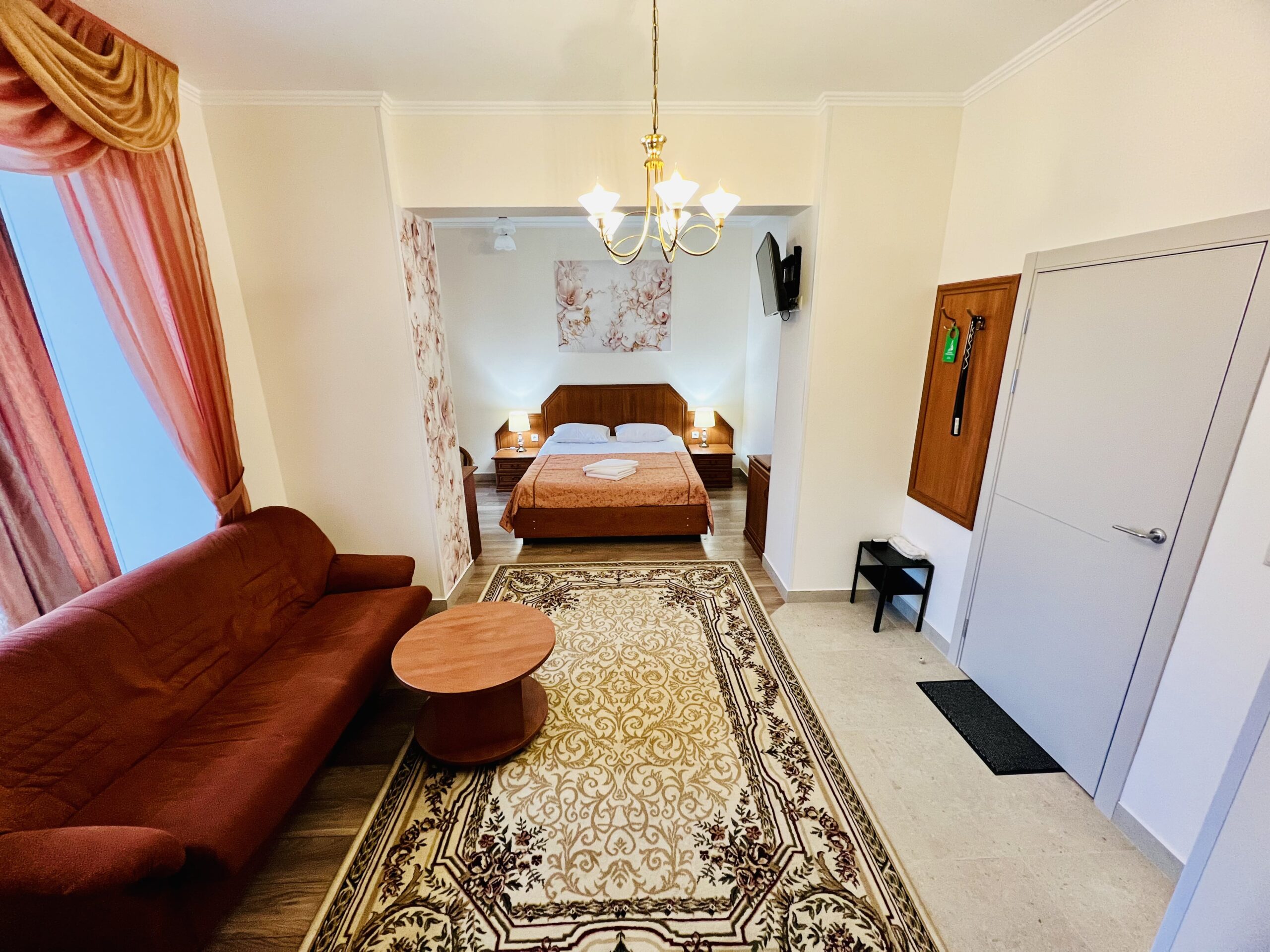 Шикарная просторная студия повышенной комфортности идеально подойдет для качественного отдыха. Номер состоит из одной большой комнаты и собственной ванной комнаты. Оборудован повышенной звукоизоляцией и новой мебелью. Доступны услуги домашней кухни, парковки, трансфера, зоны для курения.